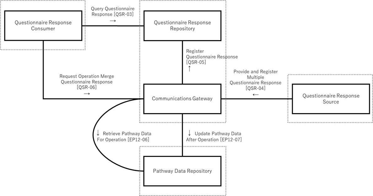 | QSR-04 | Provide and Request Register Multiple Questionnaire Response | EPath Bundle Message EP22 | 複数の入力用フォーム回答データのリポジトリへの登録を要求する。 |